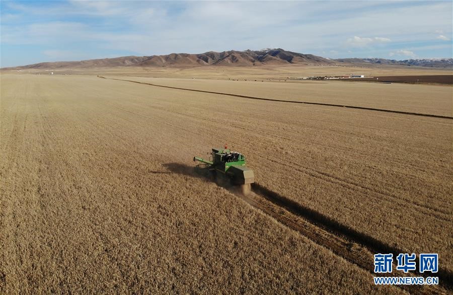 10月17日,在貴南縣過馬營鎮(zhèn),一臺(tái)收割機(jī)在田間收割青稞(無人機(jī)拍攝)。 深秋時(shí)節(jié),在青海省海南藏族自治州貴南縣過馬營鎮(zhèn),青海省三江集團(tuán)工人正抓緊時(shí)間搶收青稞。據(jù)了解,貴南縣過馬營鎮(zhèn)是青海省規(guī)模最大的青稞種植基地之一,2018年當(dāng)?shù)胤N植青稞超過5.8萬畝。 新華社…