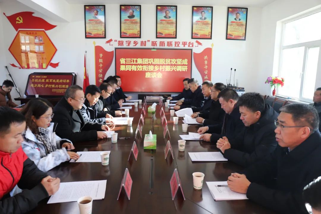 走訪慰問后,在古城鄉(xiāng)木場村召開了由集團領(lǐng)導班子成員、平安區(qū)、古城鄉(xiāng)相關(guān)領(lǐng)導、威思頓薯業(yè)公司和機關(guān)相關(guān)部室主要負責人參加的“三江集團鄉(xiāng)村振興調(diào)研座談會”。會上,集團公司副總經(jīng)理牛建偉、古城鄉(xiāng)黨委書記謝浩分別匯報了2021年鄉(xiāng)村振興工作推進情況。馬榮華同志在講話中充分肯定了脫貧攻堅和鄉(xiāng)村振興工作取得的成績。認為古城鄉(xiāng)黨委在抓黨建促生產(chǎn)上下功夫,充分利用當?shù)刈匀毁Y源稟賦,以農(nóng)業(yè)產(chǎn)業(yè)撬動鄉(xiāng)村產(chǎn)業(yè)振興,用活用足鄉(xiāng)村振興政策,強化對接交流,不斷拓展工作思路,通過共同努力,實現(xiàn)了經(jīng)濟社會高質(zhì)量發(fā)展。馬榮華同志表示,集團公司將一如既往地支持扶貧村鄉(xiāng)村振興工作,協(xié)調(diào)解決發(fā)展中存在的難題。他要求,一是要進一步提高政治站位,加強黨建引領(lǐng)助推產(chǎn)業(yè)發(fā)展,充分發(fā)揮駐村工作隊干部的模范帶頭作用。二是要緊盯適合幫扶村鄉(xiāng)村產(chǎn)業(yè)發(fā)展的項目,補齊產(chǎn)業(yè)發(fā)展短板,增強村集體經(jīng)濟實力,以黨建助推鄉(xiāng)村振興。三是要持續(xù)推動“企業(yè)進村、結(jié)對幫扶”等工作機制,深入實施幫扶村產(chǎn)業(yè)項目增收工作,以產(chǎn)業(yè)振興持續(xù)推動鄉(xiāng)村振興。