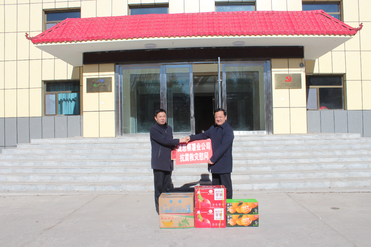 青墾大廈公司為門源種馬場(chǎng)公司捐贈(zèng)抗震物資