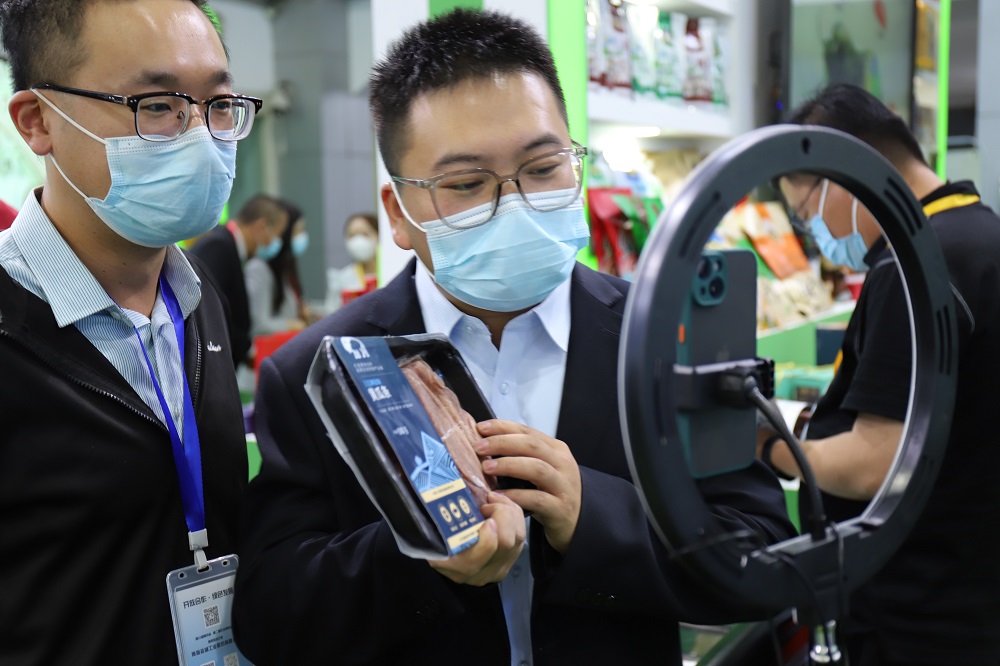 期間,在展區(qū)商品儲(chǔ)備公司、威思頓薯業(yè)公司工作人員分別開(kāi)展現(xiàn)場(chǎng)抖音直播、產(chǎn)品促銷活動(dòng),吸引眾人駐足圍觀,進(jìn)一步加大了品牌宣傳力度,廣泛交流吸納新客戶,拓寬銷售渠道。