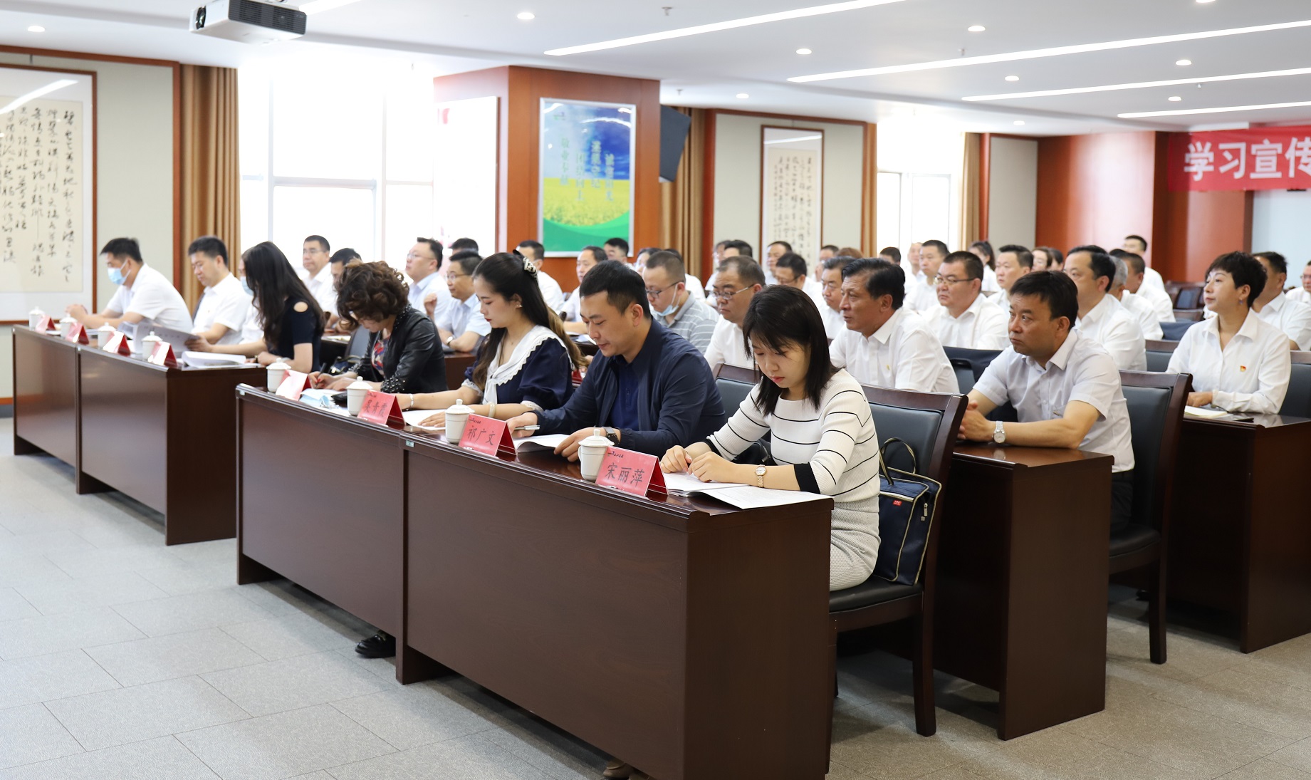 省目標責任考核領導小組成員王雪蓮、劉春雁、吳青霞、祁廣文、宋麗萍、秋睿;集團公司領導班子成員、機關各部室及所屬二級公司負責人、先進勞模代表及職工代表共62人參加。
