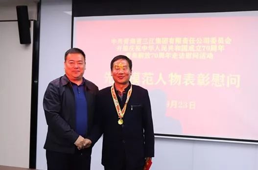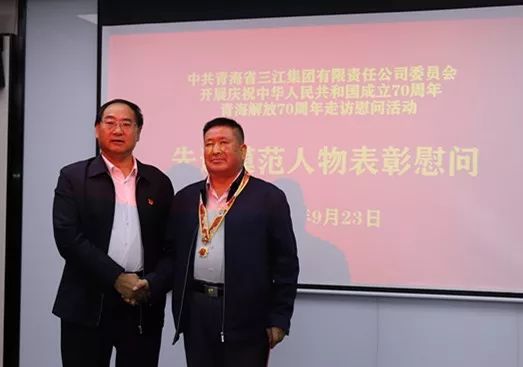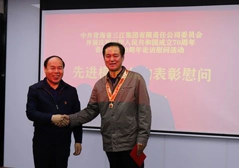 為慶祝中華人民共和國成立70周年,中共中央、國務(wù)院、中央軍委為符合條件的人員頒發(fā)“慶祝中華人民共和國成立70周年”紀(jì)念章。9月23日上午,集團公司黨委精心組織召開被中共中央、國務(wù)院、中央軍委授予功勛榮譽表彰獎勵的先進模范人物座談會,為獲得全國勞動模范的河卡種羊場退休職工袁愛善、貴南草業(yè)公司退休職工張殿輝、集團公司經(jīng)營管理部副部長苑剛同志佩戴“慶祝中華人民共和國成立70周年”紀(jì)念章,并送上慰問金,把黨的關(guān)懷和溫暖及時送到先進模范人物心中。集團公司黨委書記、董事長馬榮華,黨委副書記、總經(jīng)理李向陽出席會議,黨委副書記祁生珠主持會議。