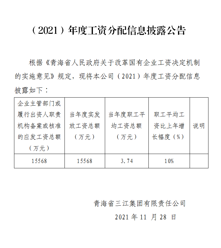(2021)年度工資分配信息披露公告