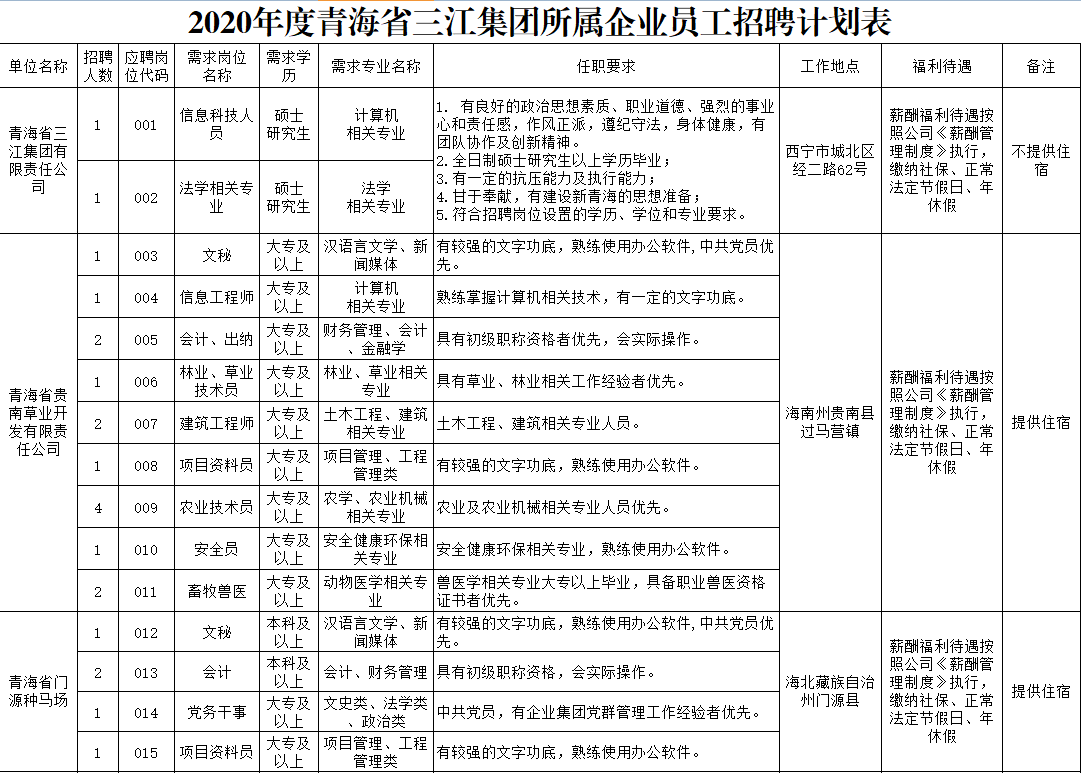 此次擬招聘崗位39個(gè),具體內(nèi)容詳見附件1,即《2020年度三江集團(tuán)所屬企業(yè)員工招聘計(jì)劃表》。