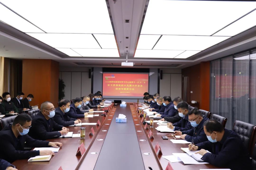 11月22日,三江集團(tuán)黨委召開理論學(xué)習(xí)中心組學(xué)習(xí)(擴(kuò)大)會(huì),圍繞“學(xué)習(xí)貫徹黨的十九屆六中全會(huì)精神”深入開展學(xué)習(xí)交流研討。省委黨史學(xué)習(xí)教育第十二巡回指導(dǎo)組組長(zhǎng)、省國(guó)資委二級(jí)巡視員元乃光、指導(dǎo)組成員、省國(guó)資委企業(yè)領(lǐng)導(dǎo)人員管理處二級(jí)調(diào)研員陳建華到會(huì)指導(dǎo)。會(huì)議由集團(tuán)公司黨委書記、董事長(zhǎng)馬榮華主持,機(jī)關(guān)各部室中心主任以上人員參加。